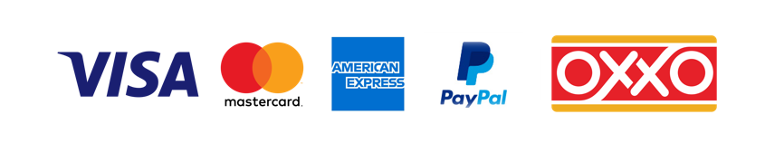 Contamos con los siguientes métodos de pago: Tarjetas de crédito, débito, por medio de la plataforma de PayPal y tranferencias en OXXO.
